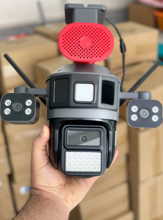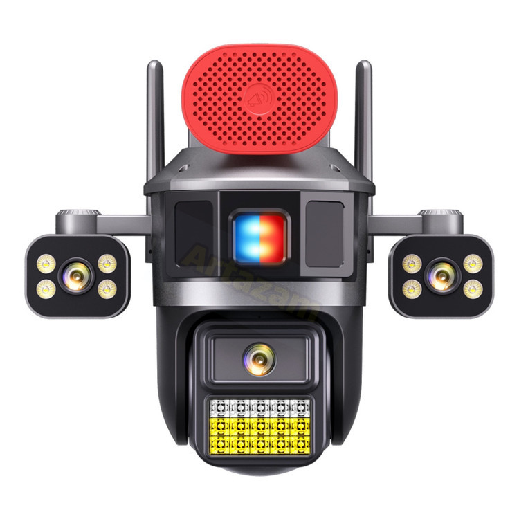 دوربین سیمکارتی آژیر دار ۳ لنز همزمان چرخشی نسخه اروپایی با چراغ پلیسی